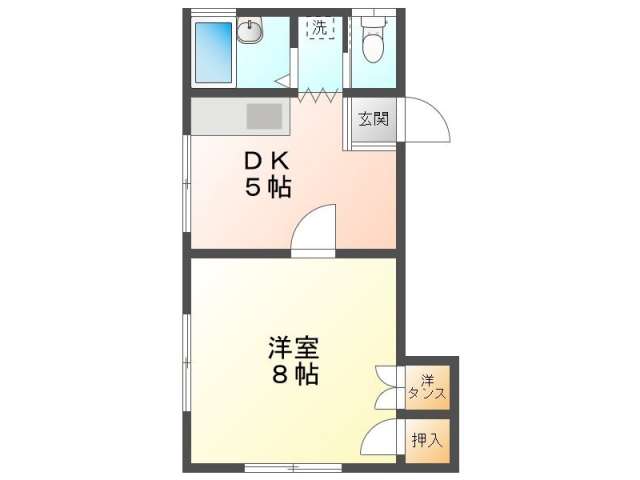 | 詳細間取 | 1DK (洋8帖×1、DK5帖) | ||