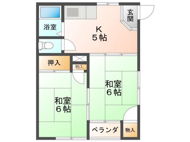 | 詳細間取 | 2K (和6帖×2、キッチン5帖) | ||