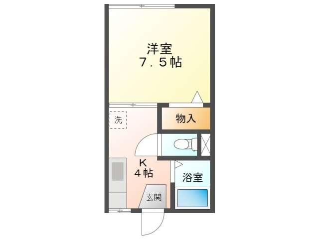 | 詳細間取 | 1K (洋7.5帖×1、キッチン4帖) | ||