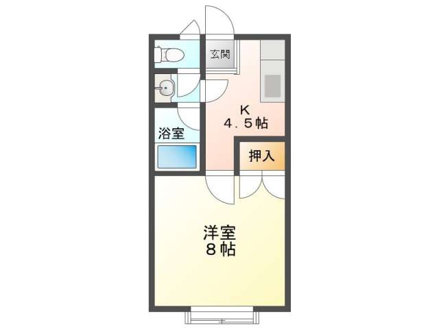 | 詳細間取 | 1K (洋8帖×1、キッチン4.5帖) | ||