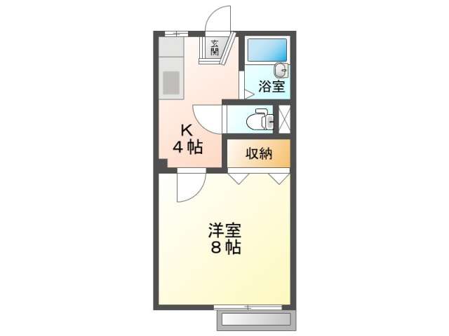 | 詳細間取 | 1K (洋8帖×1、キッチン4帖) | ||